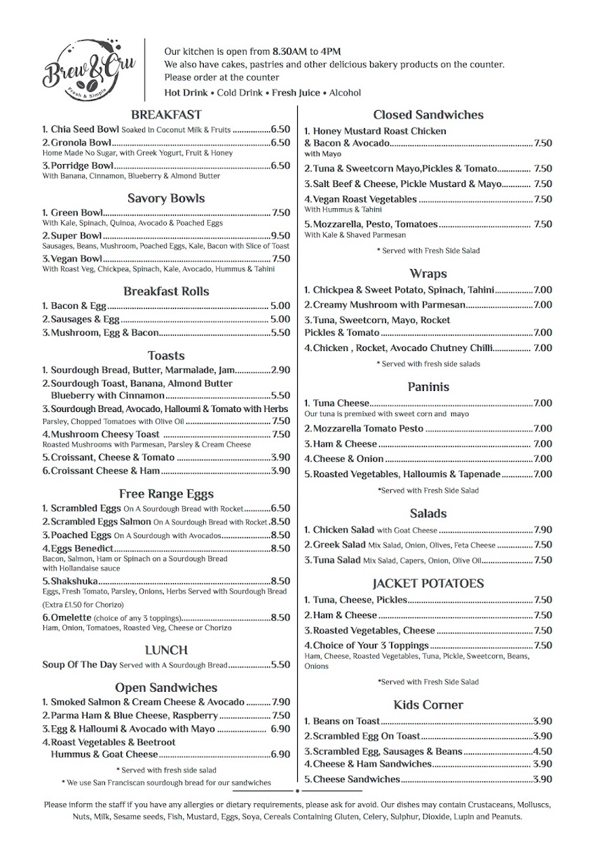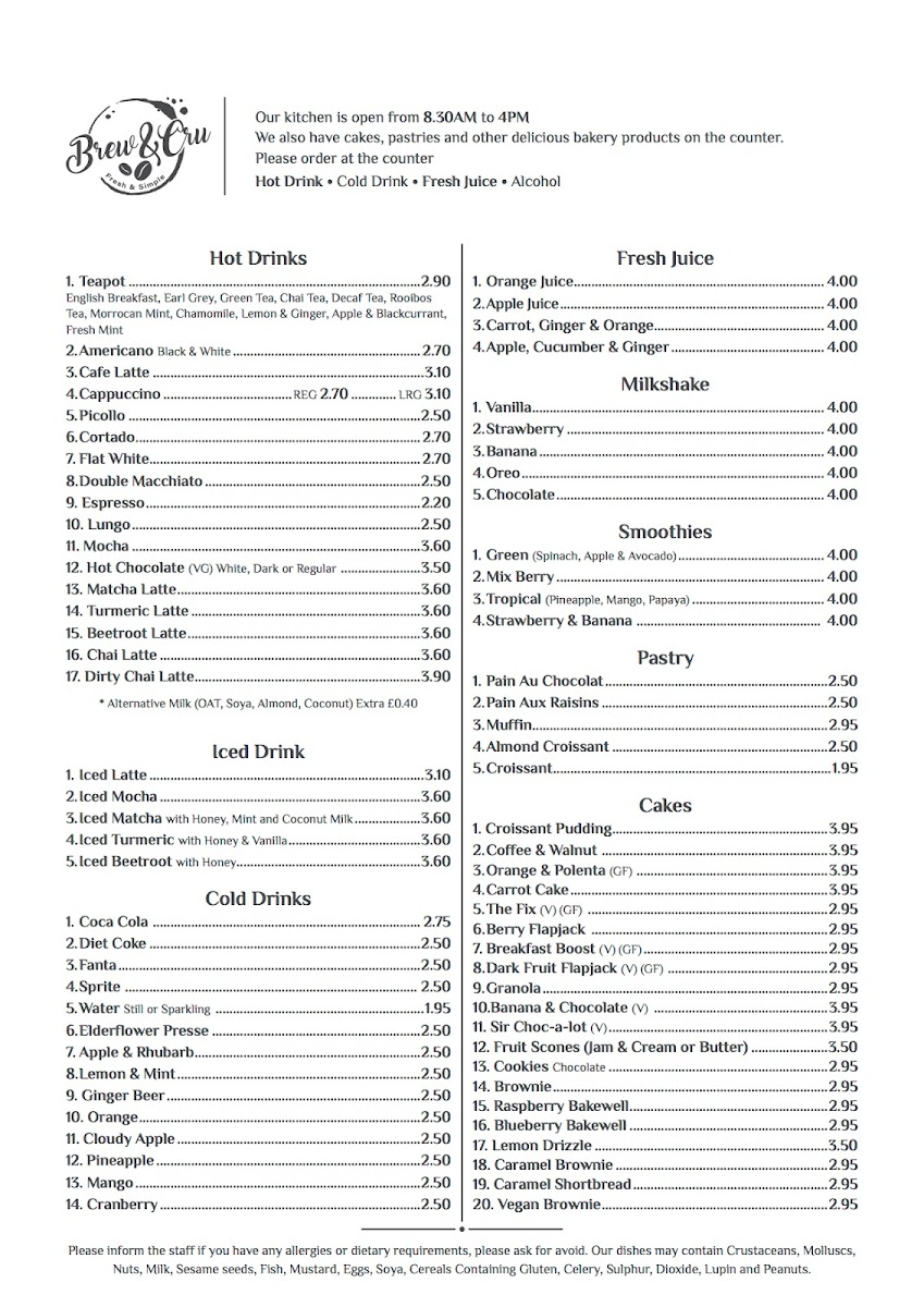 Welcome to Brew and Cru, a delightful café tucked away at 69 Tollgate House, Harpenden. This vibrant spot is not just about incredible coffee; it boasts a thoughtfully curated menu that promises satisfying meals for all.